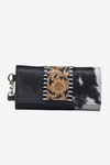 The Harmony blends the strength of hand-tooled leather with the natural beauty of cowhide, creating a piece that celebrates individuality while staying rooted in timeless design. Every pattern in the hide is one-of-a-kind, ensuring that no two wallets are ever the same — a reflection of your own unique journey.